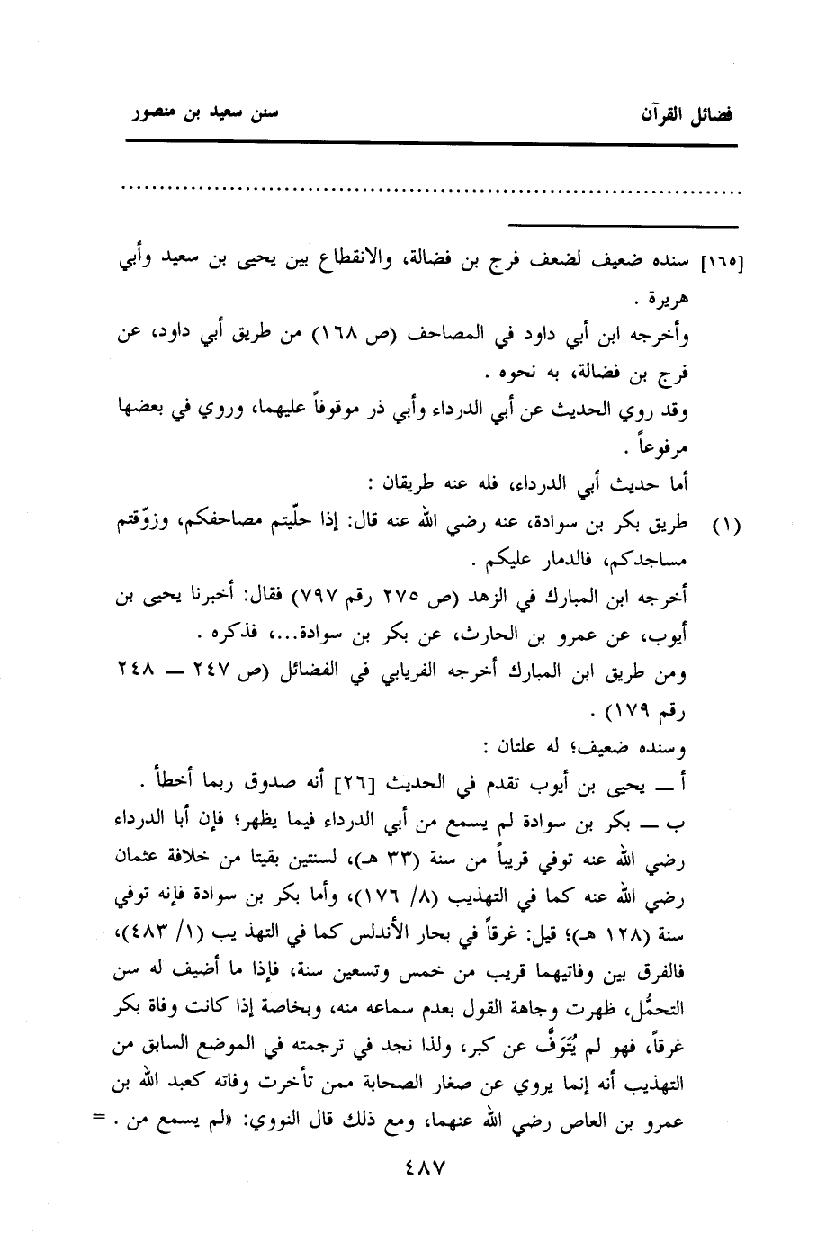 = [١٦٥] سنده ضعيف لضعف فرج بن فضالة، والانقطاع بين يحيى بن سعيد وأبي هريرة.