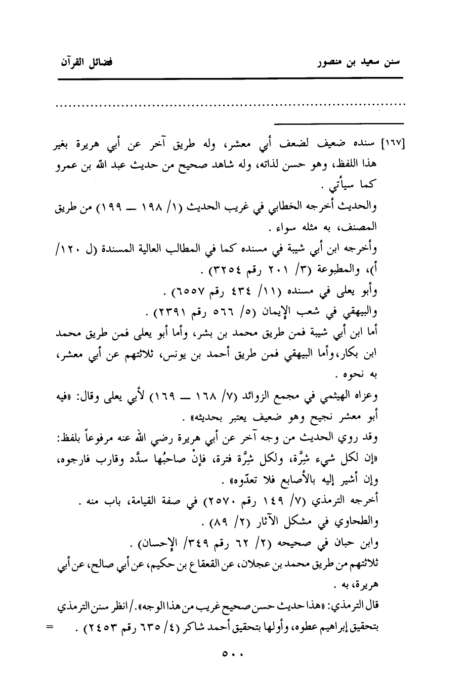 [١٦٧] سنده ضعيف لضعف أبي معشر، وله طريق آخر عن أبي هريرة بغير هذا اللفظ، وهو حسن لذاته، وله شاهد صحيح من حديث عبد الله بن عمرو كما سيأتي.