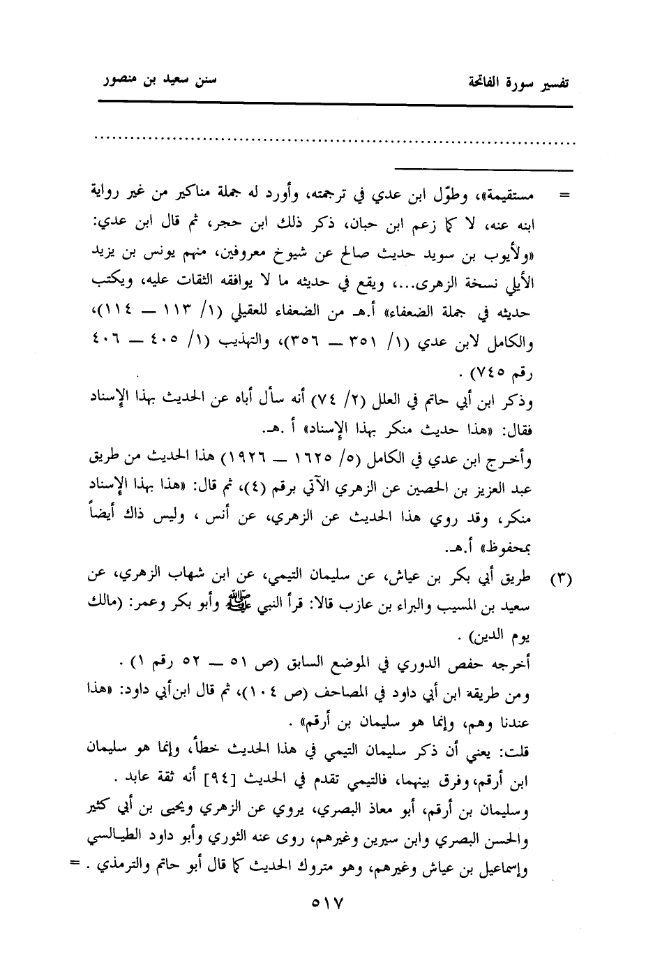 وسليمان بن أرقم، أبو معاذ البصري، يروي عن الزهري ويحيى بن أبي كثير والحسن البصري وابن سيرين وغيرهم، روى عنه الثوري وأبو داود الطيالسي وإسماعيل بن عياش وغيرهم، وهو متروك الحديث كما قال أبو حاتم والترمذي. =