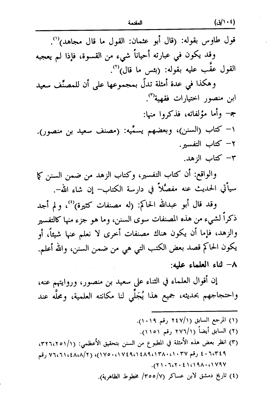 (¬٣) انظر بعض هذه الأمثلة في المطبوع من سنن سعيد بتحقيق الأعظمي (١/ ٢٥١، ٣٢٦، ٣٤٩، ٤٠٦ رقم ١٠٣٧، ١٣٨٠، ١٤٨٩، ١٧٤٩، ١٧٥٠)، (٢/ ٨، ٤٨، ٦١، ٧٦ رقم ١٧٩٧، ١٩٨٠، ٢٠٤١، ٢١٠٦).