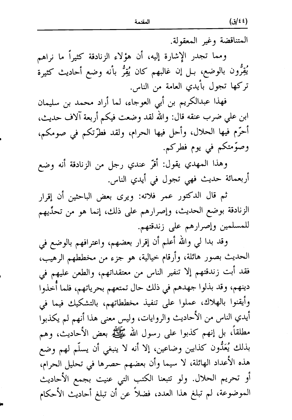 ثم قال الدكتور عمر فلاتة: ويرى بعض الباحثين أن إقرار الزنادقة بوضع الحديث، وإصرارهم على ذلك، إنما هو من تحدِّيهم للمسلمين وإصرارهم على زندقتهم.