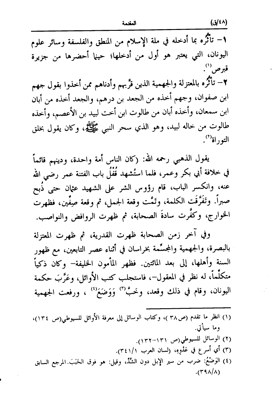 (¬١) انظر ما تقدم (ص ٣٨)، وكتاب الوسائل إلى معرفة الأوائل للسيوطي (ص ١٣٤)، وما سيأتي.