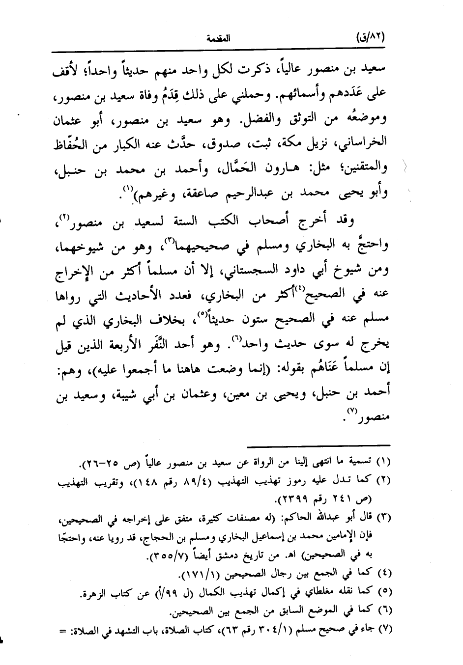 (¬١) تسمية ما انتهى إلينا من الرواة عن سعيد بن منصور عالياً (ص ٢٥ - ٢٦).