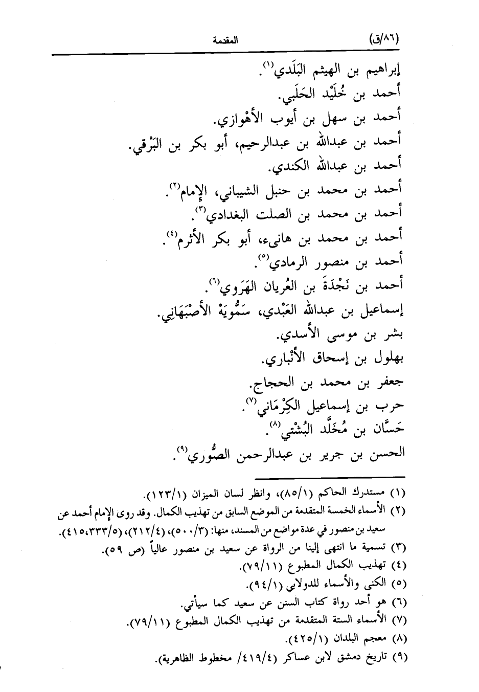 (¬٢) الأسماء الخمسة المتقدمة من الموضع السابق من تهذيب الكمال. وقد روى الإمام أحمد عن سعيد بن منصور في عدة مواضع من المسند، منها: (٣/ ٥٠٠)، (٤/ ٢١٢)، (٥/ ٣٣٣، ٤١٥).