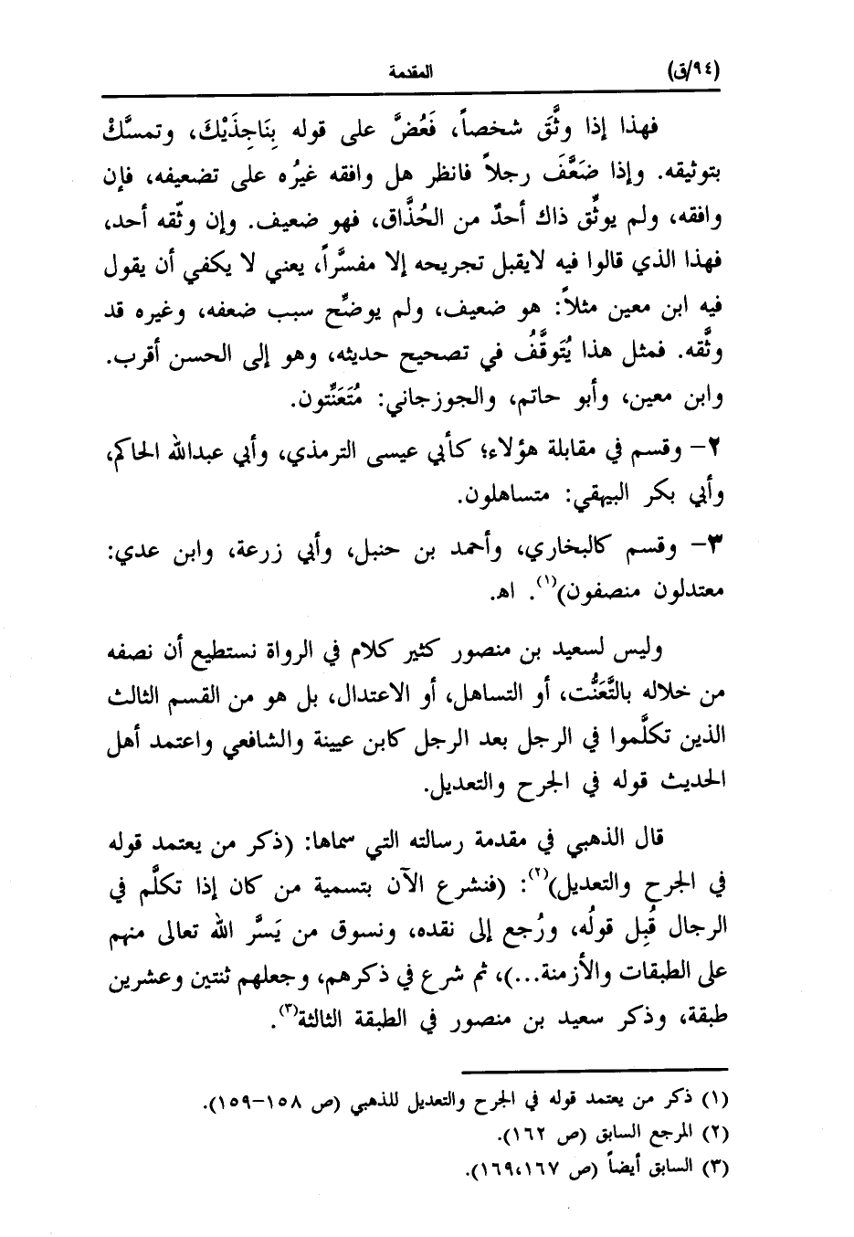 (¬١) ذكر من يعتمد قوله في الجرح والتعديل للذهبي (ص ١٥٨ - ١٥٩).