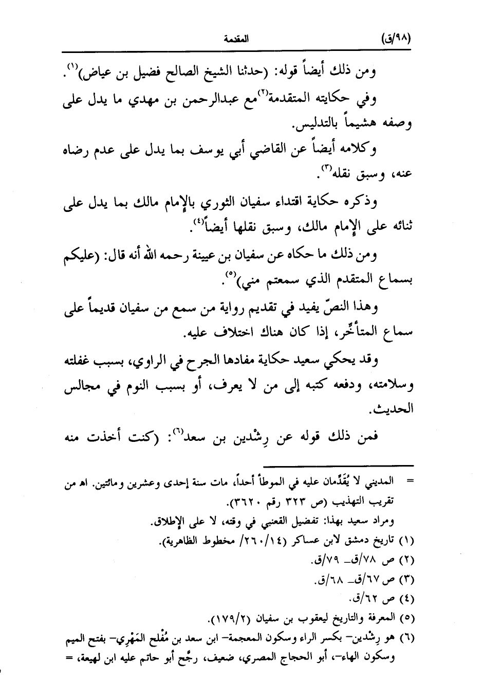 ومن ذلك ما حكاه عن سفيان بن عيينة رحمه الله أنه قال: (عليكم بسماع المتقدم الذي سمعتم مني) (¬٥).