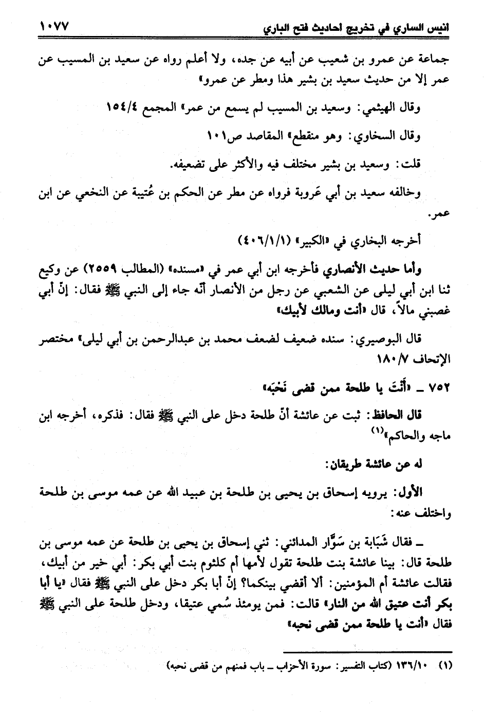 (¬1) 10/ 136 (كتاب التفسير: سورة الأحزاب- باب فمنهم من قضى نحبه)
