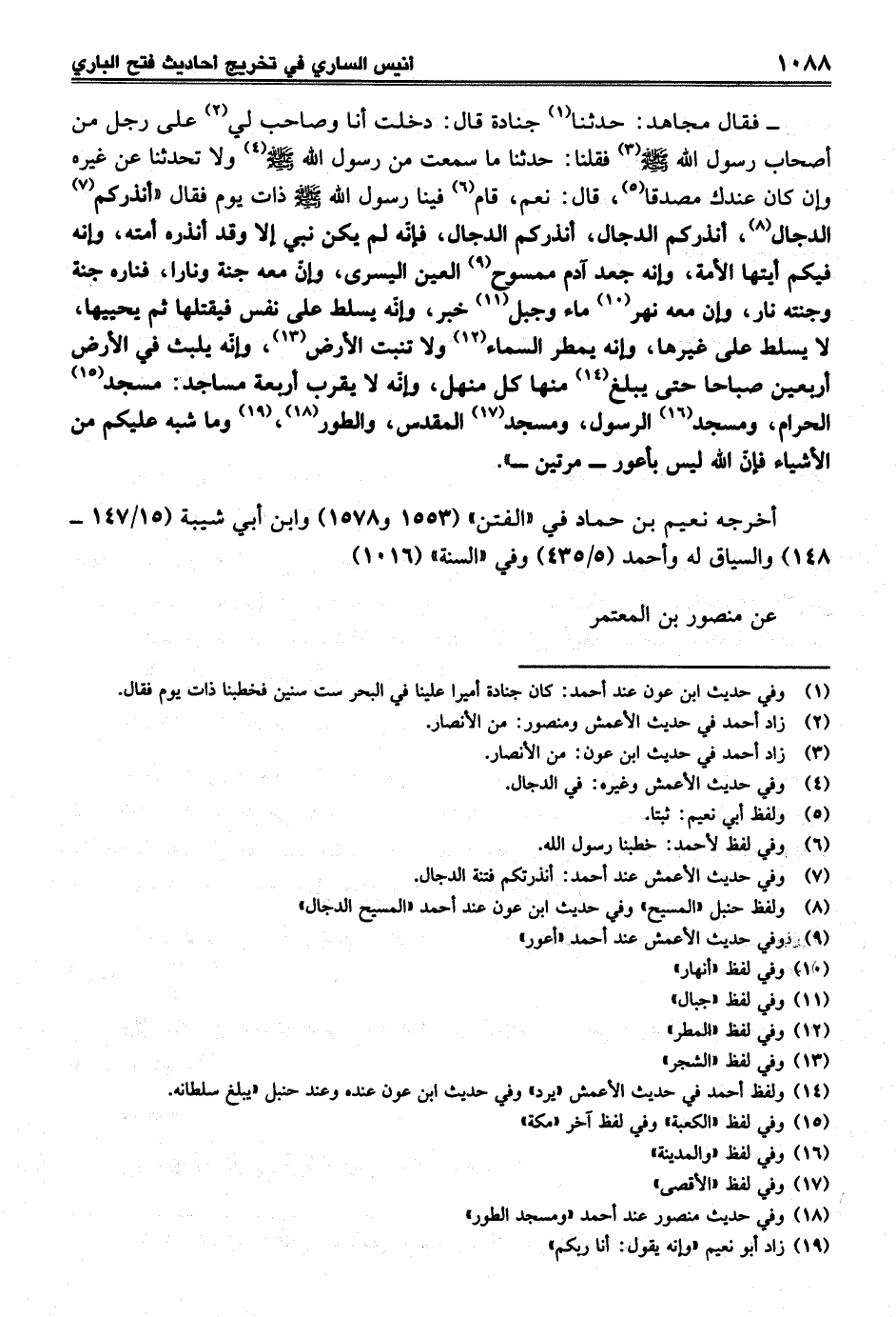 (¬8) ولفظ حنبل "المسيح" وفي حديث ابن عون عند أحمد "المسيح الدجال"