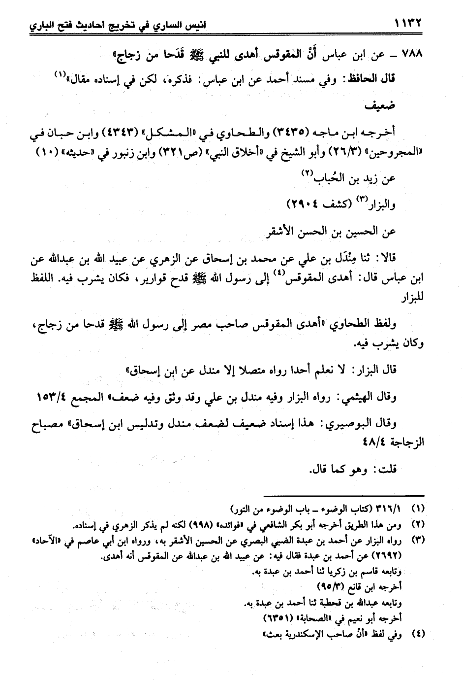 788 - عن ابن عباس أَنَّ المقوقس أهدى للنبي - صلى الله عليه وسلم - قَدَحا من زجاج"