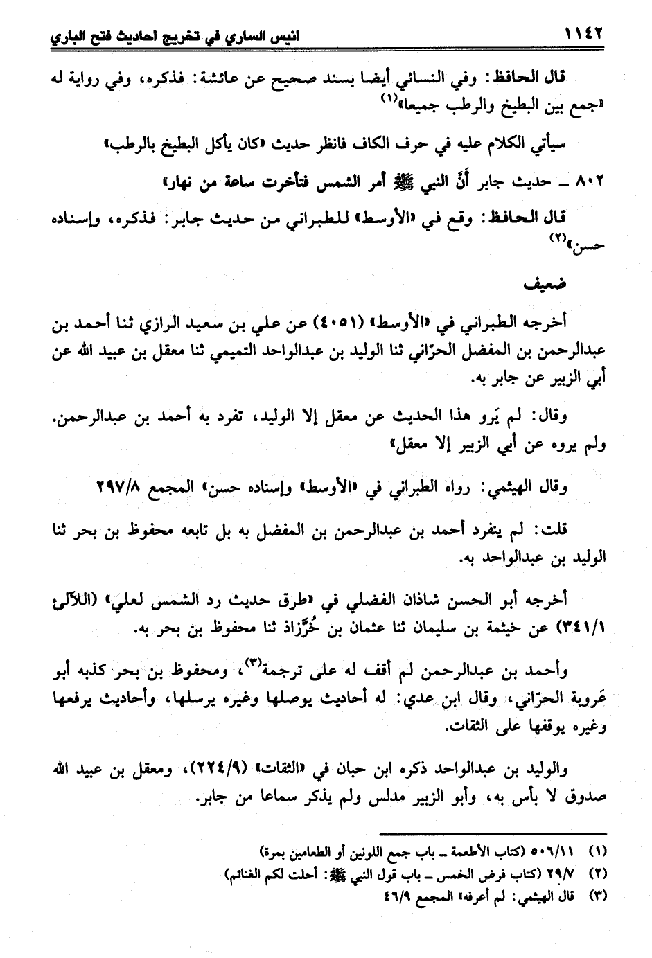 802 - حديث جابر أَنَّ النبي - صلى الله عليه وسلم - أمر الشمس فتأخرت ساعة من نهار"