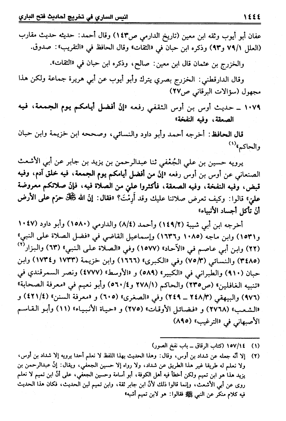1079 - حديث أوس بن أوس الثقفي رفعه "إنّ أفضل أيامكم يوم الجمعة، فيه الصعقة، وفيه النفخة"