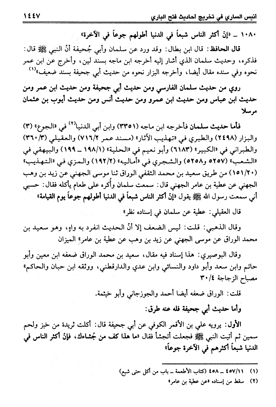 1080 - "إنّ أكثر الناس شبعاً في الدنيا أطولهم جوعاً في الآخرة"