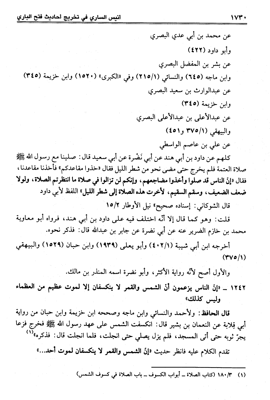 1242 - "إنّ الناس يزعمون أن الشمس والقمر لا ينكسفان إلا لموت عظيم من العظماء وليس كذلك"