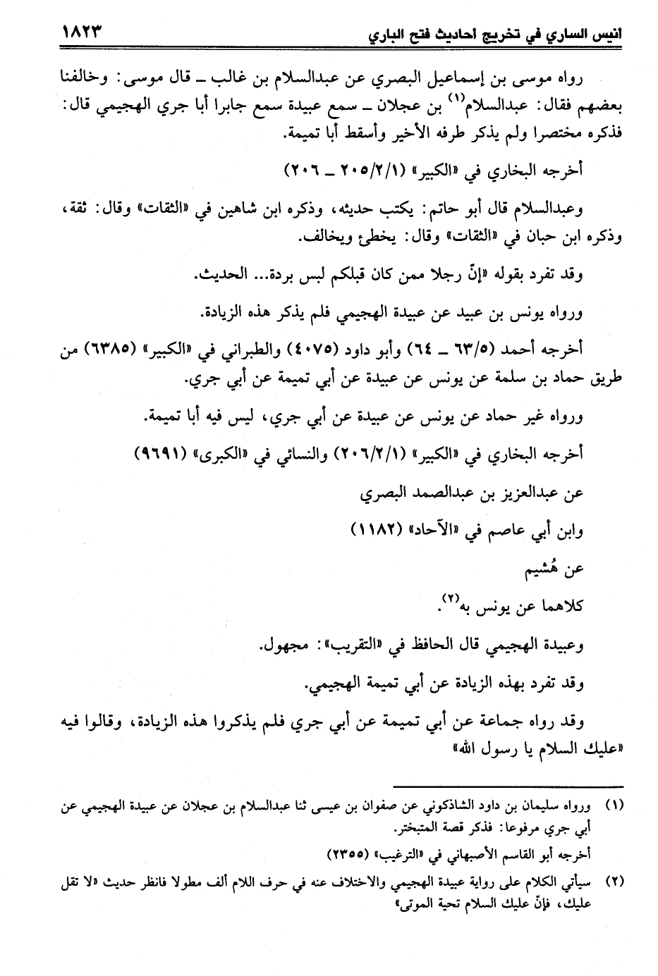 (¬2) سيأتي الكلام على رواية عبيدة الهجيمي والاختلاف عنه في حرف اللام ألف مطولا فانظر حديث "لا تقل عليك، فإنّ عليك السلام تحية الموتى"