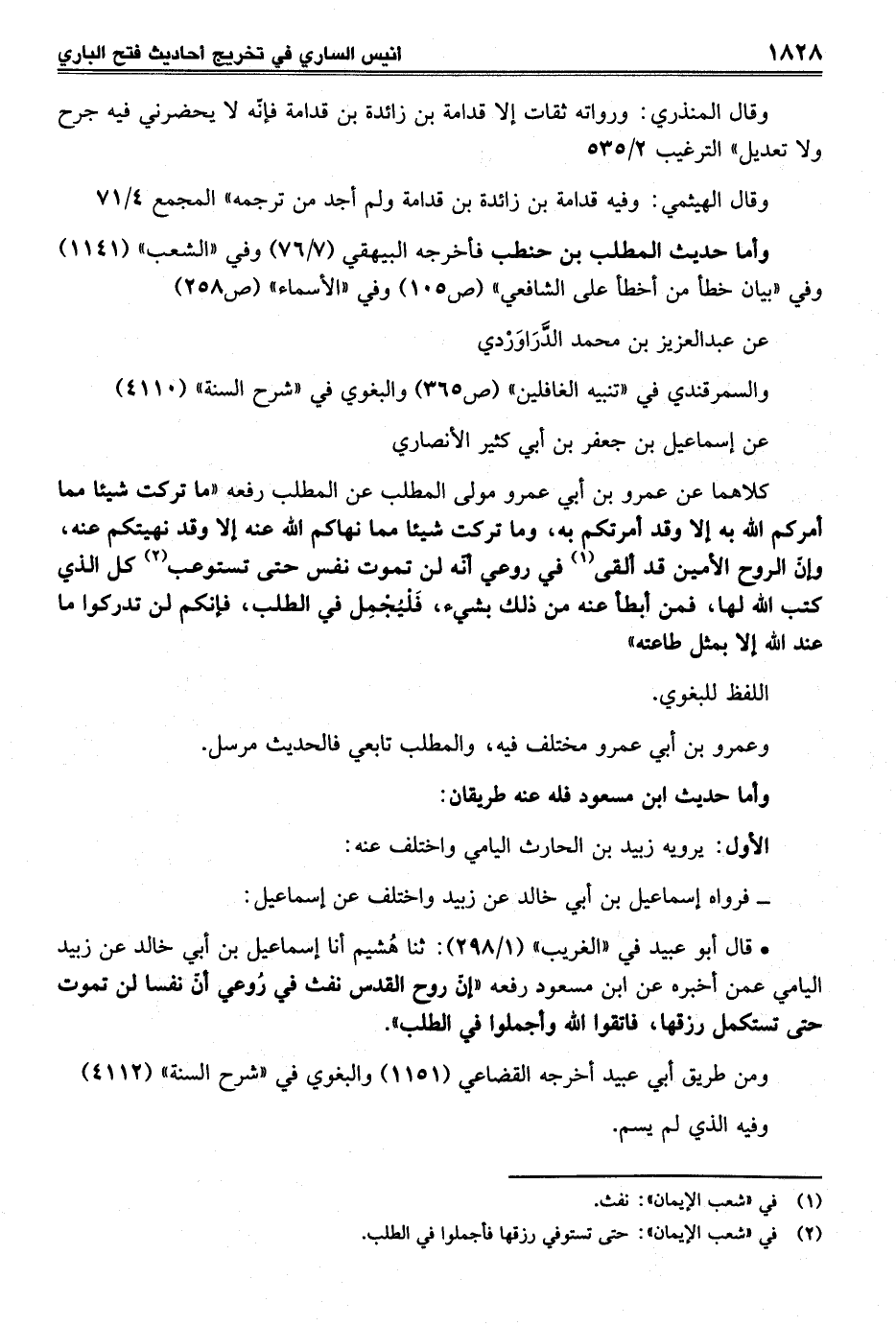 • قال أبو عبيد في "الغريب" (1/ 298): ثنا هُشيم أنا إسماعيل بن أبي خالد عن زُبيد اليامي عمن أخبره عن ابن مسعود رفعه "إنّ روح القدس نفث في رُوعي أنّ نفسا لن تموت حتى تستكمل رزقها، فاتقوا الله وأجملوا في الطلب".