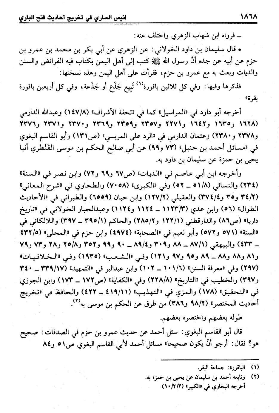 قال أبو القاسم البغوي: سئل أحمد عن حديث عمرو بن حزم في الصدقات: صحيح هو؟ فقال: أرجو أنْ يكون صحيحا" مسائل أحمد لأبي القاسم البغوي ص 51 و 84