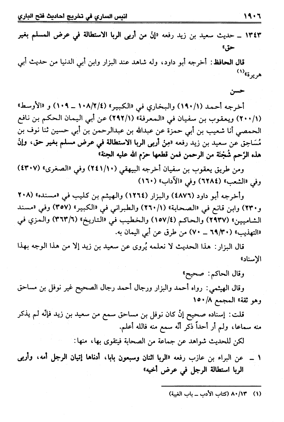 1343 - حديث سعيد بن زيد رفعه "إنّ من أربي الربا الاستطالة في عرض المسلم بغير حق"