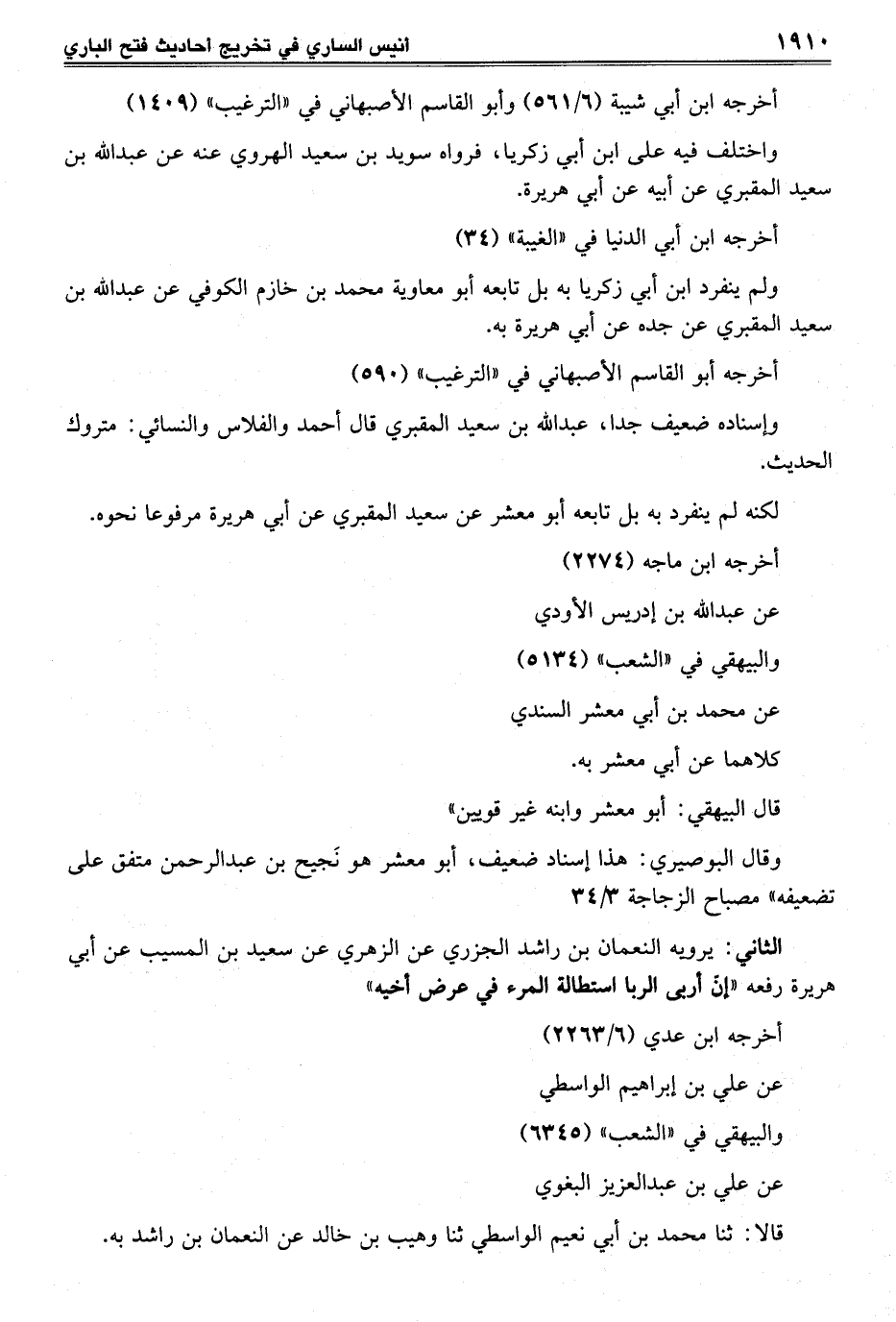 الثاني: يرويه النعمان بن راشد الجزري عن الزهري عن سعيد بن المسيب عن أبي هريرة رفعه "إنّ أربى الربا استطالة المرء في عرض أخيه"