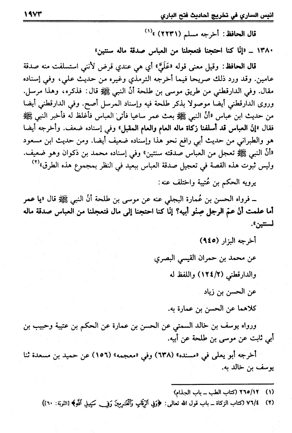 1380 - "إنّا كنا احتجنا فتعجلنا من العباس صدقة ماله سنتين"