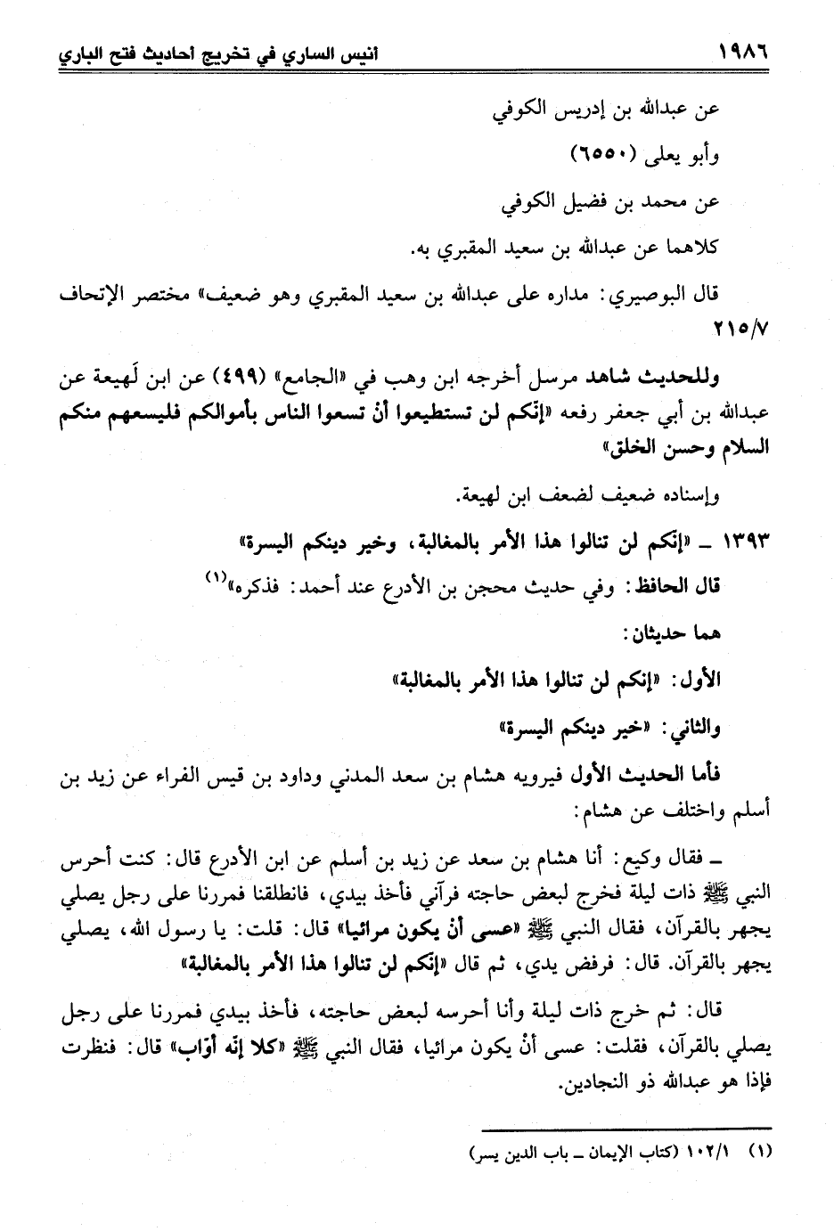 (¬1) 1/ 102 (كتاب الإيمان - باب الدين يسر)