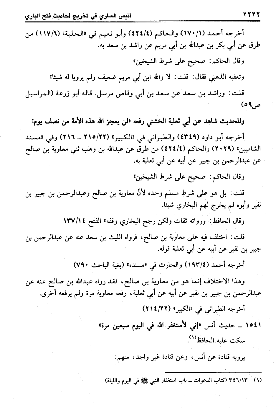 1541 - حديث أنس "إني لأستغفر الله في اليوم سبعين مرة"
