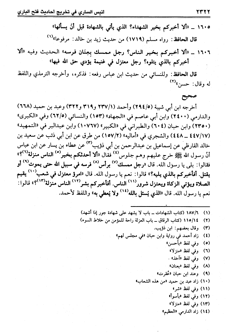 1606 - "ألا أخبركم بخير الناس؟ رجل ممسك بِعِنَان فرسه" الحديث وفيه "ألا أخبركم بالذي يتلوه؟ رجل معتزل في غنيمة يؤدي حق الله فيها"