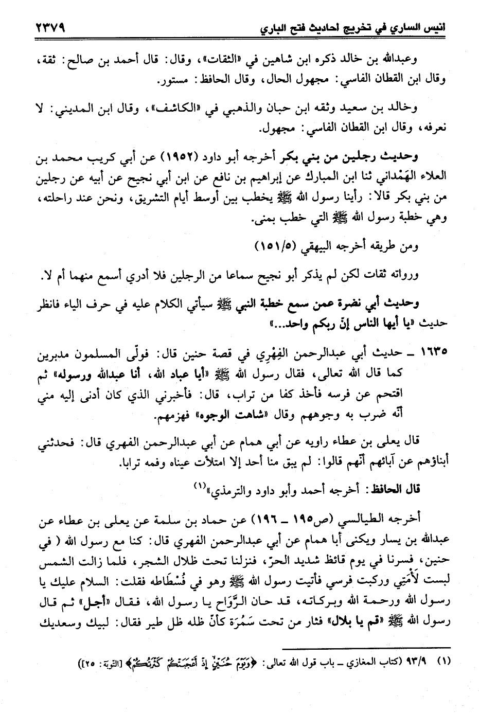(¬1) 9/ 93 (كتاب المغازي- باب قول الله تعالى: {وَيَوْمَ حُنَيْنٍ إِذْ أَعْجَبَتْكُمْ كَثْرَتُكُمْ} [التّوبة: 25])