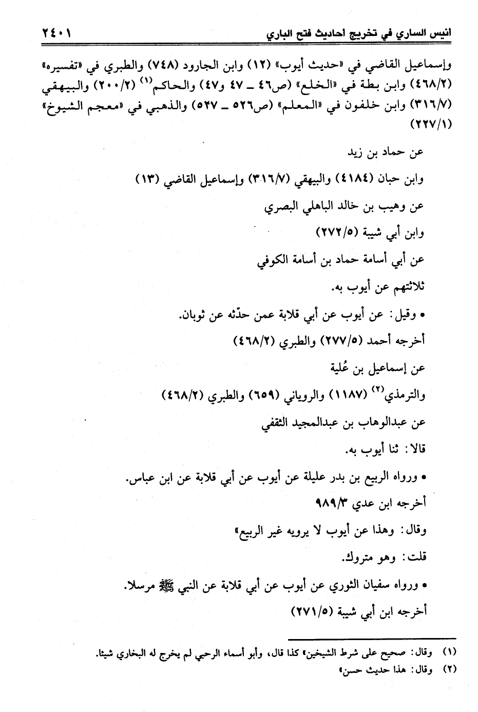 وإسماعيل القاضي في "حديث أيوب" (12) وابن الجارود (748) والطبري في "تفسيره" (2/ 468) وابن بطة في "الخلع" (ص 46 - 47 و 47) والحاكم (¬1) (2/ 200) والبيهقي (7/ 316) وابن خلفون في "المعلم" (ص 526 - 537) والذهبي في "معجم الشيوخ" (1/ 227)