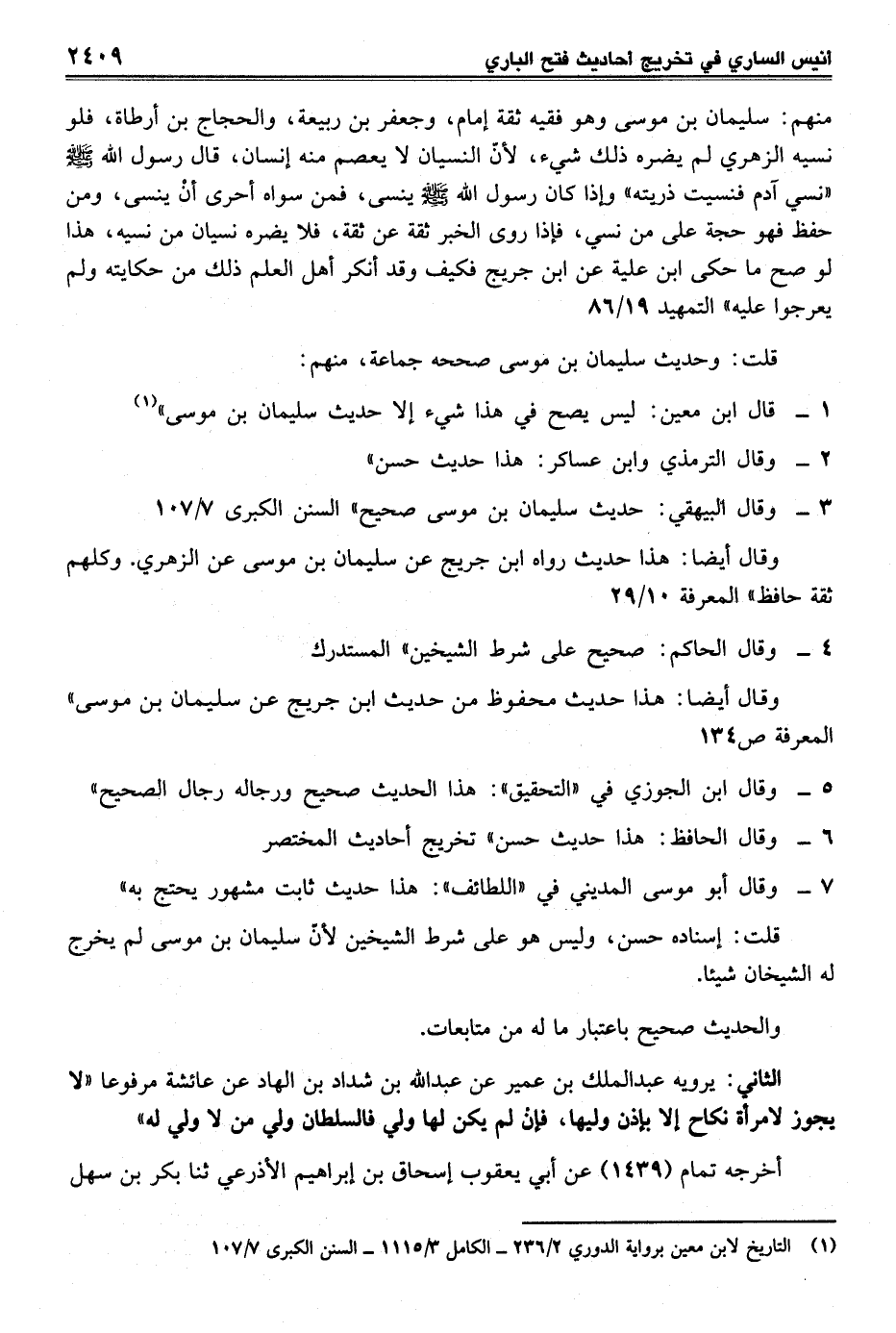 1 - قال ابن معين: ليس يصح في هذا شيء إلا حديث سليمان بن موسى" (¬1)