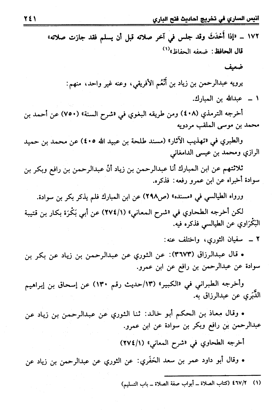 • قال عبد الرزاق (3673): عن الثوري عن عبد الرحمن بن زياد عن بكر بن سوادة عن عبد الرحمن بن رافع عن ابن عمرو.
