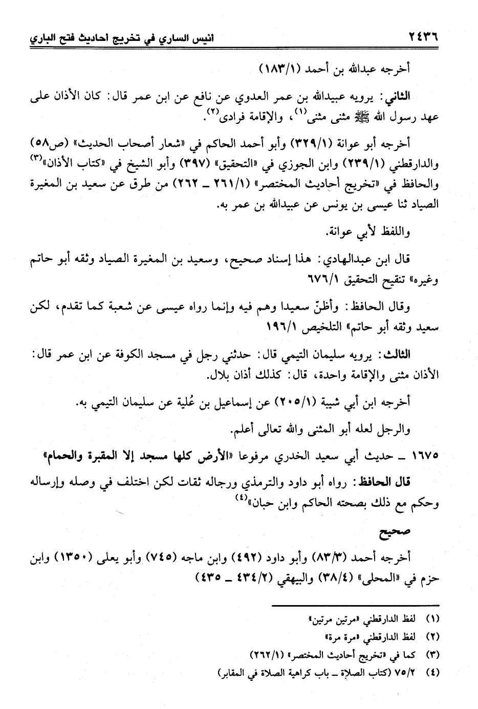 1675 - حديث أبي سعيد الخدري مرفوعا "الأرض كلها مسجد إلا المقبرة والحمام"