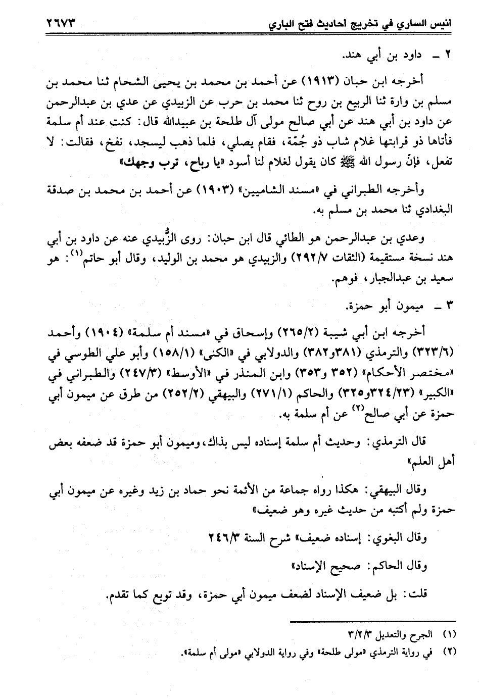 أخرجه ابن حبان (1913) عن أحمد بن محمد بن يحيى الشحام ثنا محمد بن مسلم بن وارة ثنا الربيع بن روح ثنا محمد بن حرب عن الزبيدي عن عدي بن عبد الرحمن عن داود بن أبي هند عن أبي صالح مولى آل طلحة بن عبيد الله قال: كنت عند أم سلمة فأتاها ذو قرابتها غلام شاب ذو جُمّة، فقام يصلي، فلما ذهب ليسجد، نفخ، فقالت: لا تفعل، فإنّ رسول الله - صلى الله عليه وسلم - كان يقول لغلام لنا أسود "يا رباح، ترب وجهك"