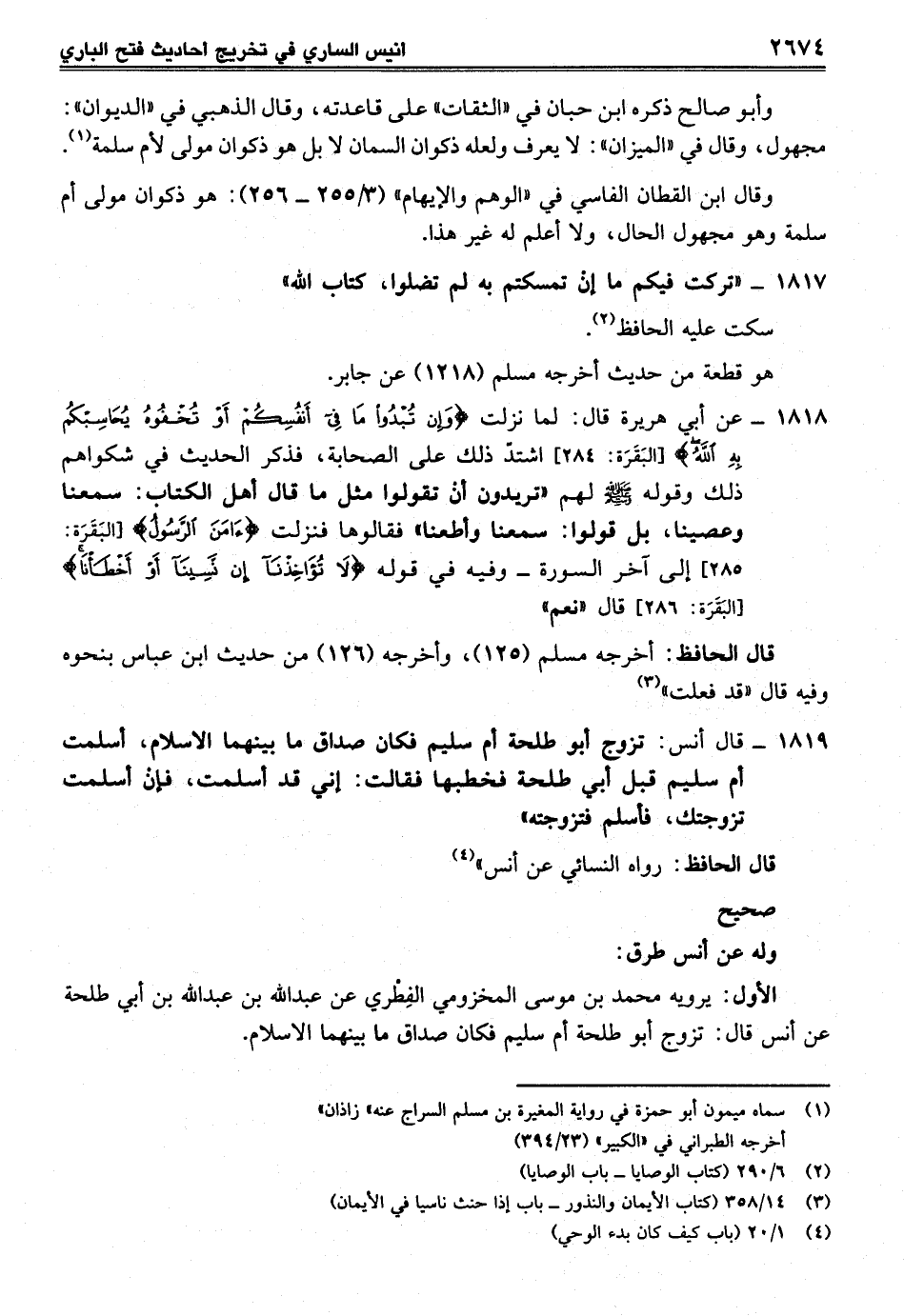 كتاب أنيس الساري (تخريج أحاديث فتح الباري) (اسم الجزء: 4)