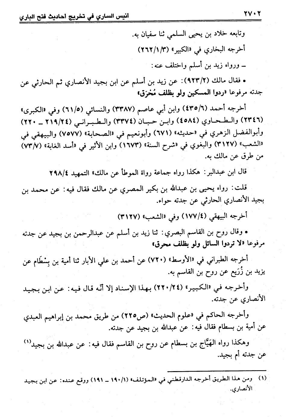 • فقال مالك (2/ 923): عن زيد بن أسلم عن ابن بجيد الأنصاري ثم الحارثي عن جدته مرفوعا "ردوا المسكين ولو بظلف مُحْرَق"