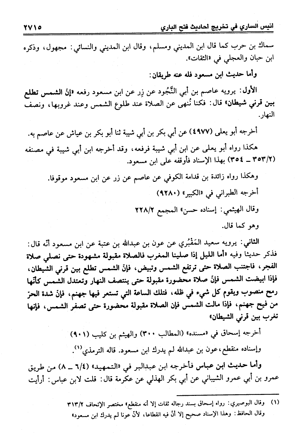 وقال الحافظ: وهذا الإسناد صحيح إلا أنّ فيه انقطاعا، لأنّ عونا لم يدرك ابن مسعود"