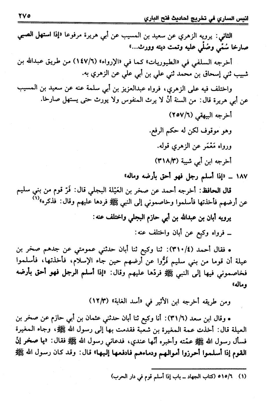 187 - "إذا أسلم رجل فهو أحق بأرضه وماله"