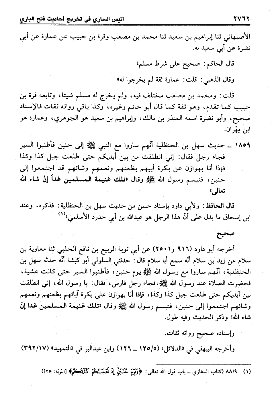 (¬1) 9/ 88 (كتاب المغازي - باب قول اله تعالى: {وَيَوْمَ حُنَيْنٍ إِذْ أَعْجَبَتْكُمْ كَثْرَتُكُمْ} [التوبة: 25]