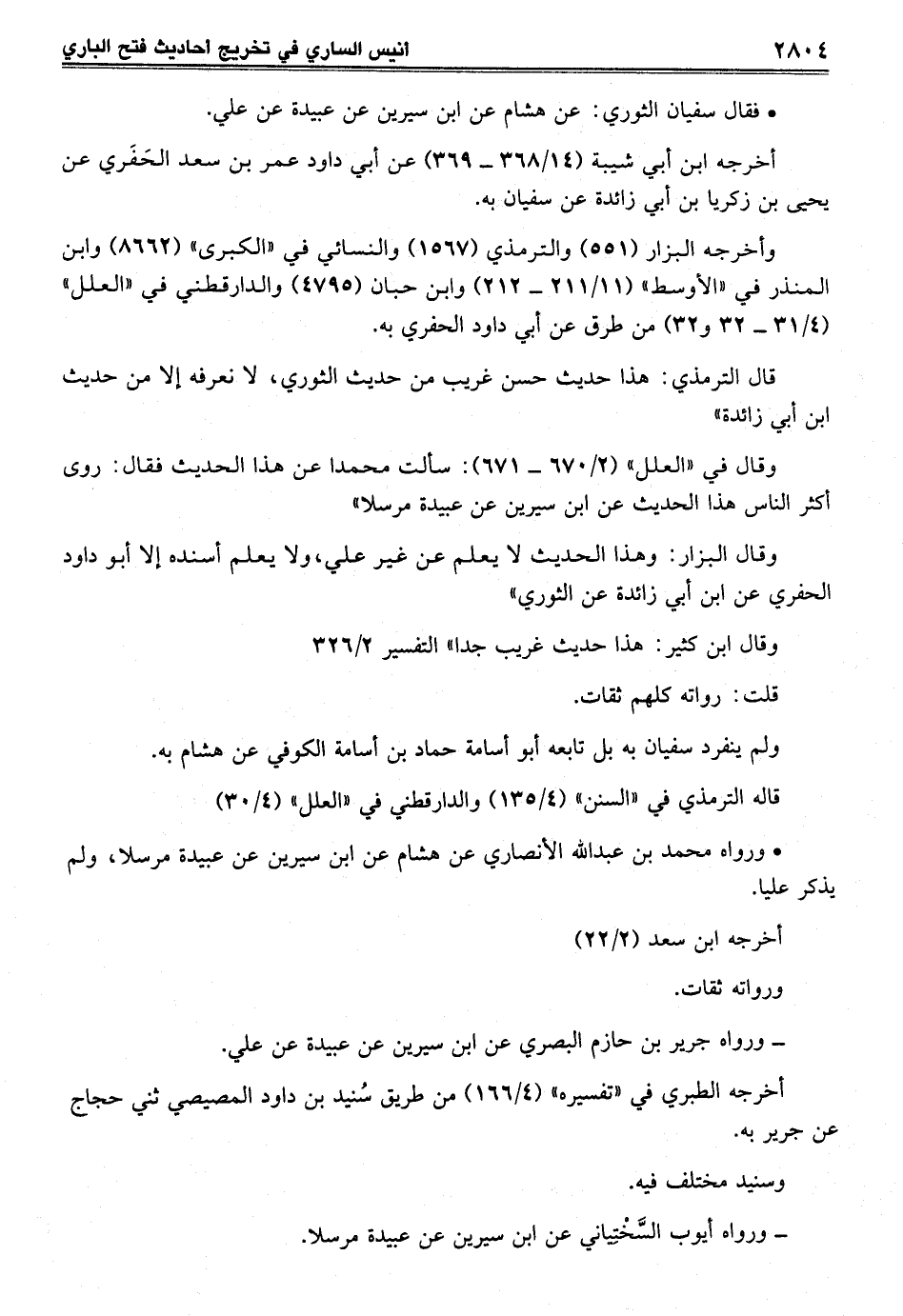 • فقال سفيان الثوري: عن هشام عن ابن سيرين عن عبيدة عن علي.