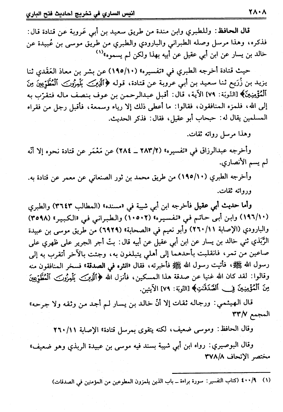 (¬1) 9/ 400 (كتاب التفسير: سورة براءة - باب الذين يلمزون المطوعين من المؤمنين في الصدقات)