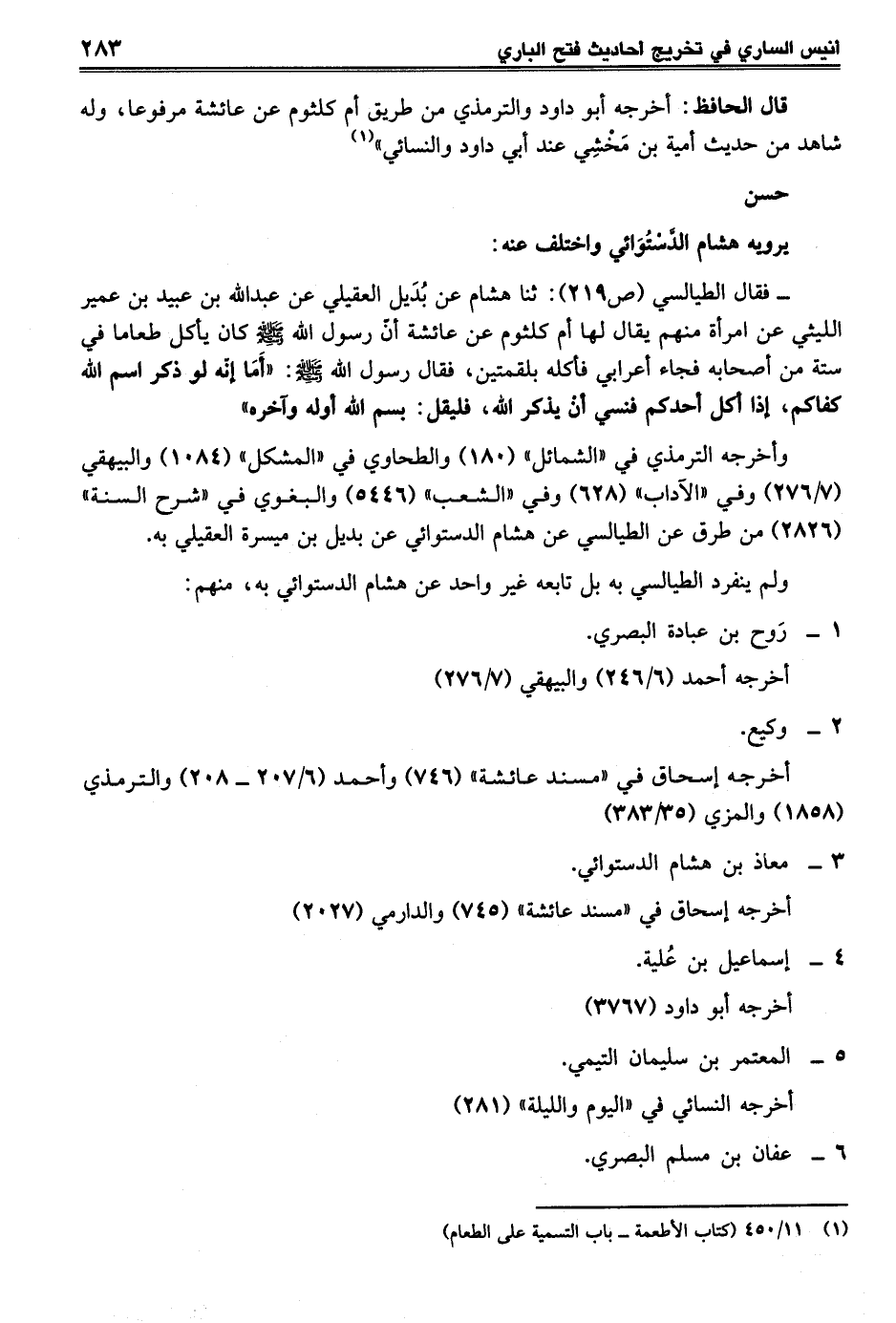 (¬1) 11/ 450 (كتاب الأطعمة- باب التسمية على الطعام)