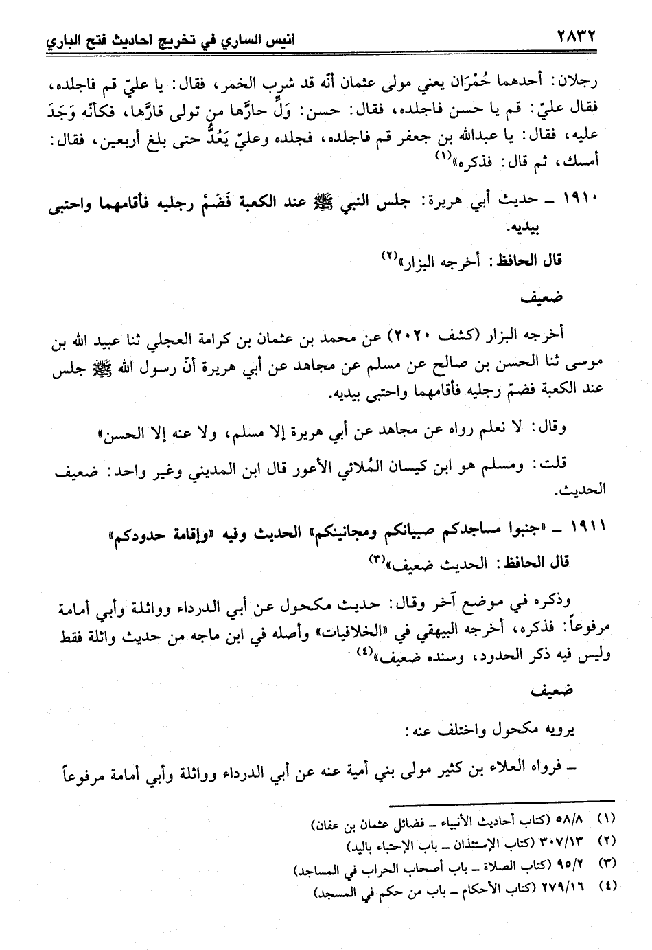 1911 - "جنبوا مساجدكم صبيانكم ومجانينكم" الحديث وفيه "وإقامة حدودكم"