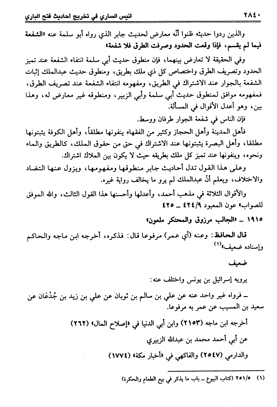والذين ردوا حديثه ظنوا أنّه معارض لحديث جابر الذي رواه أبو سلمة عنه "الشفعة فيما لم يقسم، فإذا وقعت الحدود وصرفت الطرق فلا شفعة"