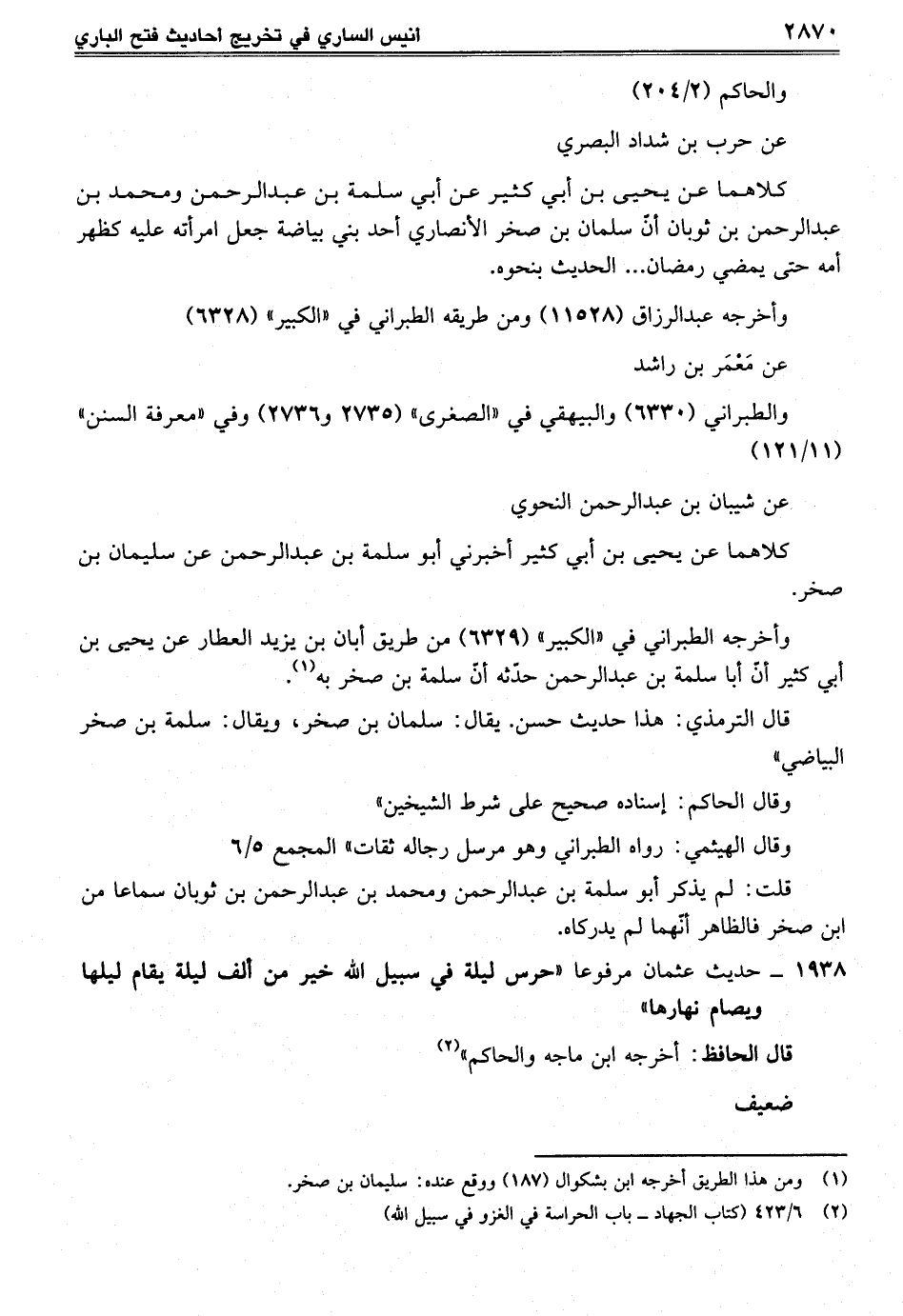 1938 - حديث عثمان مرفوعا "حرس ليلة في سبيل الله خير من ألف ليلة يقام ليلها ويصام نهارها"