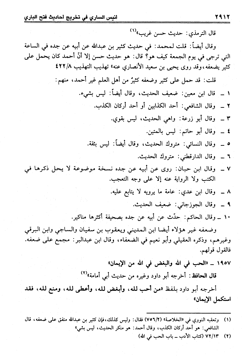 (¬1) وتعقبه النووي في "الخلاصة" (2/ 756) فقال: وليس كذلك، فإن كثير بن عبد الله متفق على ضعفه، قال الشافعي: هو أحد أركان الكذب، وقال أحمد: هو منكر الحديث، ليس بشيء"