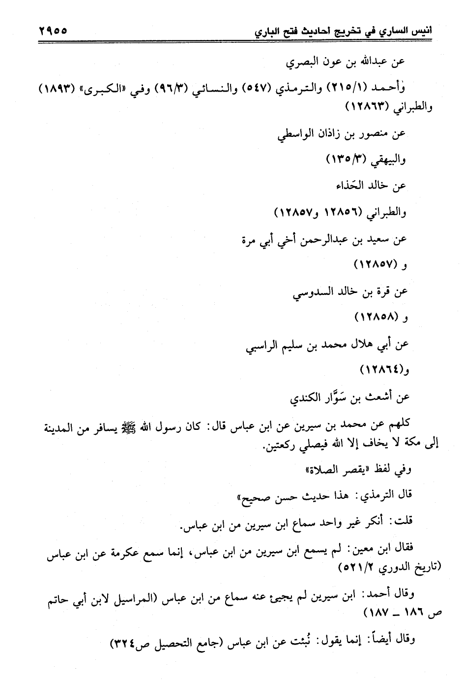كلهم عن محمد بن سيرين عن ابن عباس قال: كان رسول الله - صلى الله عليه وسلم - يسافر من المدينة إلى مكة لا يخاف إلا الله فيصلي ركعتين.