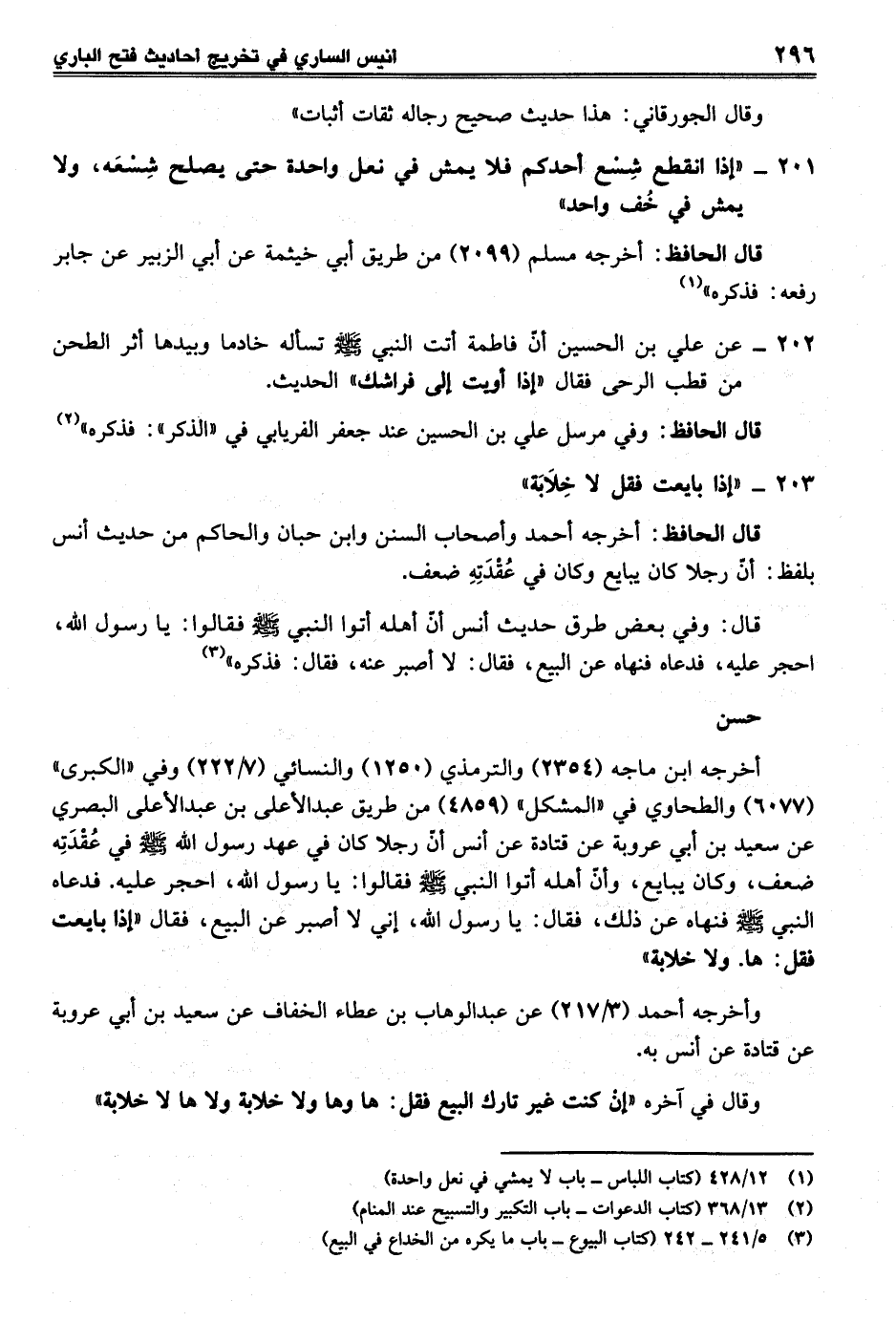 201 - "إذا انقطع شِسْع أحدكم فلا يمش في نعل واحدة حتى يصلح شِسْعَه، ولا يمش في خُف واحد"