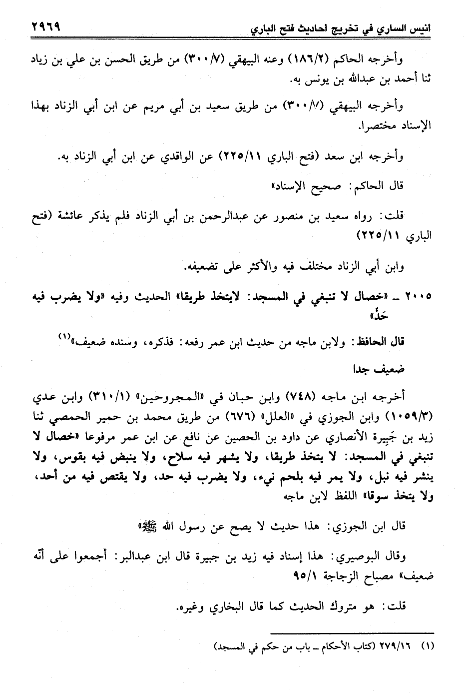 2005 - "خصال لا تنبغي في المسجد: لايتخذ طريقا" الحديث وفيه "ولا يضرب فيه حَدٌّ"