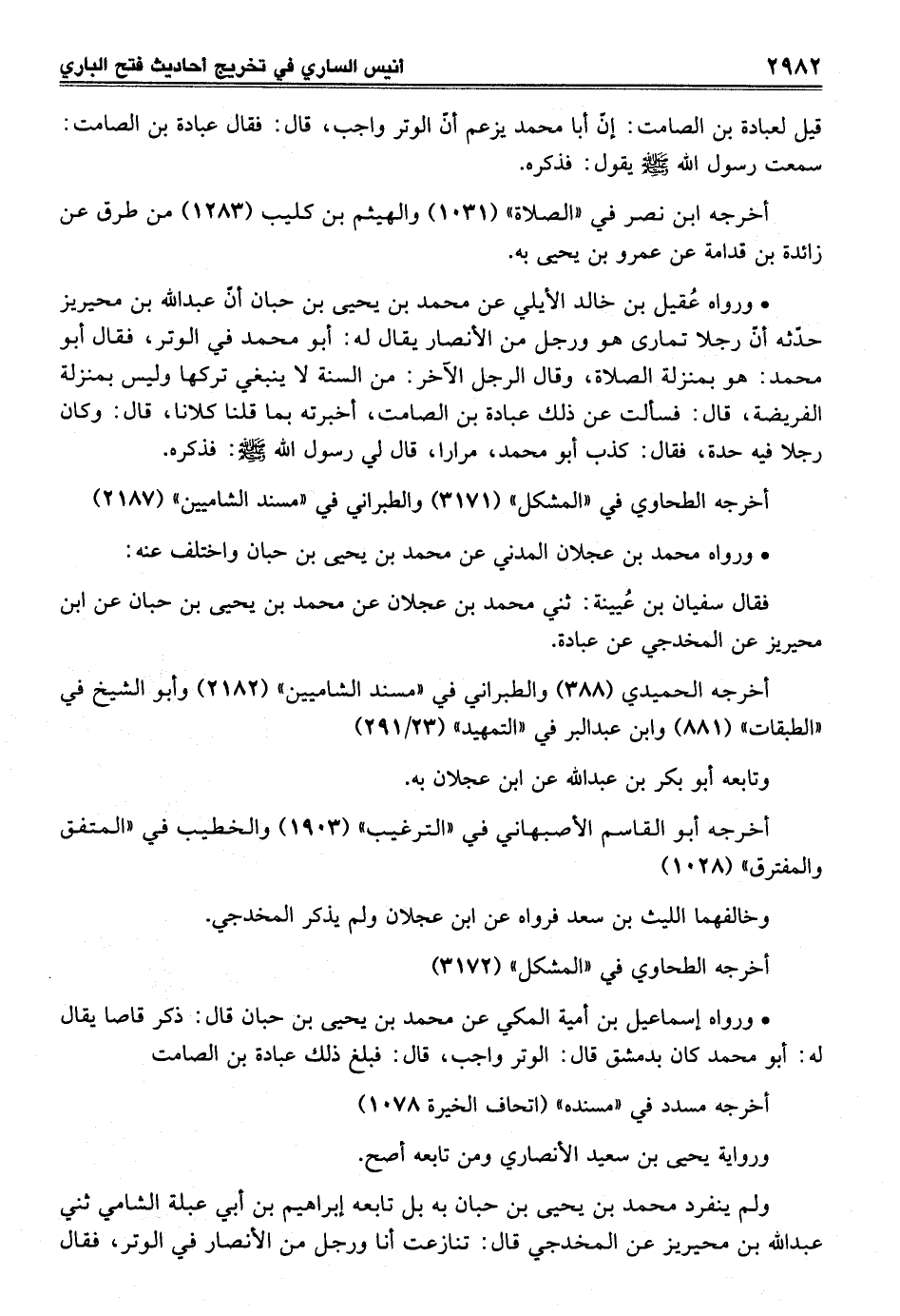 • ورواه إسماعيل بن أمية المكي عن محمد بن يحيى بن حبان قال: ذكر قاصا يقال له: أبو محمد كان بدمشق قال: الوتر واجب، قال: فبلغ ذلك عبادة بن الصامت