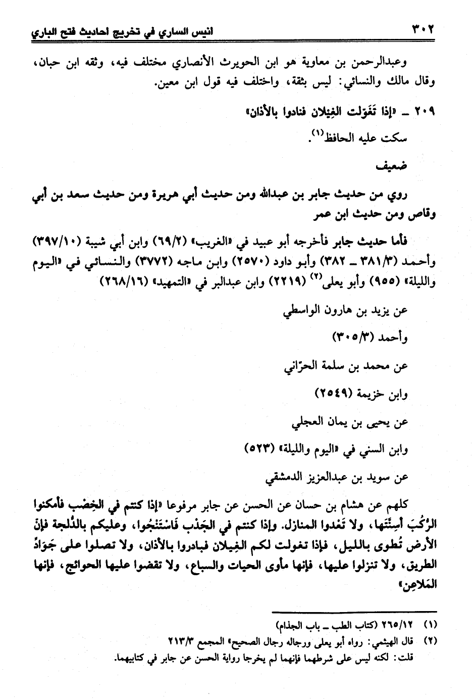 209 - "إذا تَغَوّلت الغِيْلان فنادوا بالأذان"