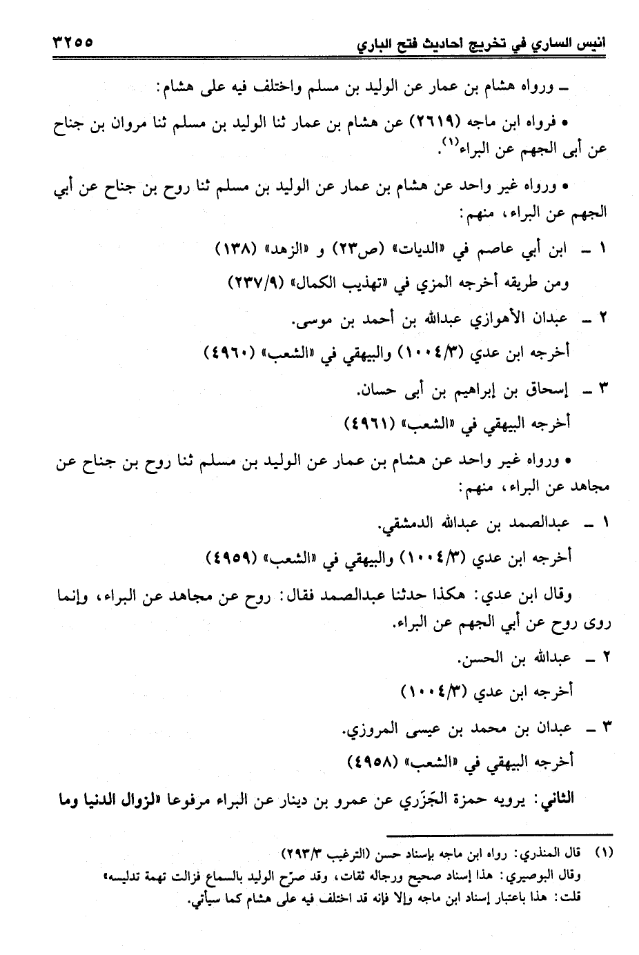 • ورواه غير واحد عن هشام بن عمار عن الوليد بن مسلم ثنا روح بن جناح عن مجاهد عن البراء، منهم: